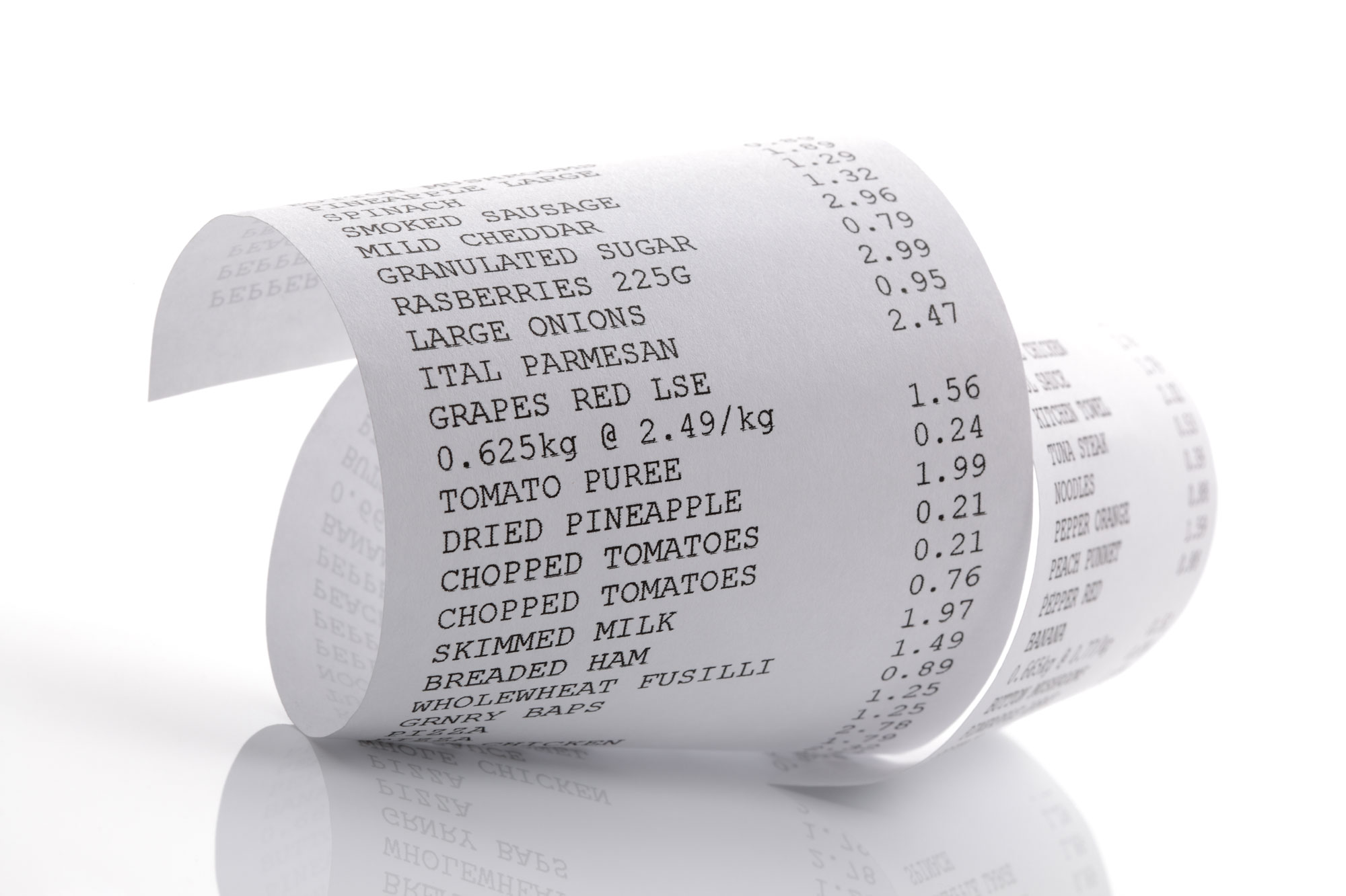 Carbonless paper rolls allow for duplicate or triple copy receipts. Just like bond paper rolls, ink is used for printing on the first sheet of paper. Then the impact from the printing on the first sheet is transferred to the second yellow sheet. For 3-ply rolls a third copy on pink paper is produced.