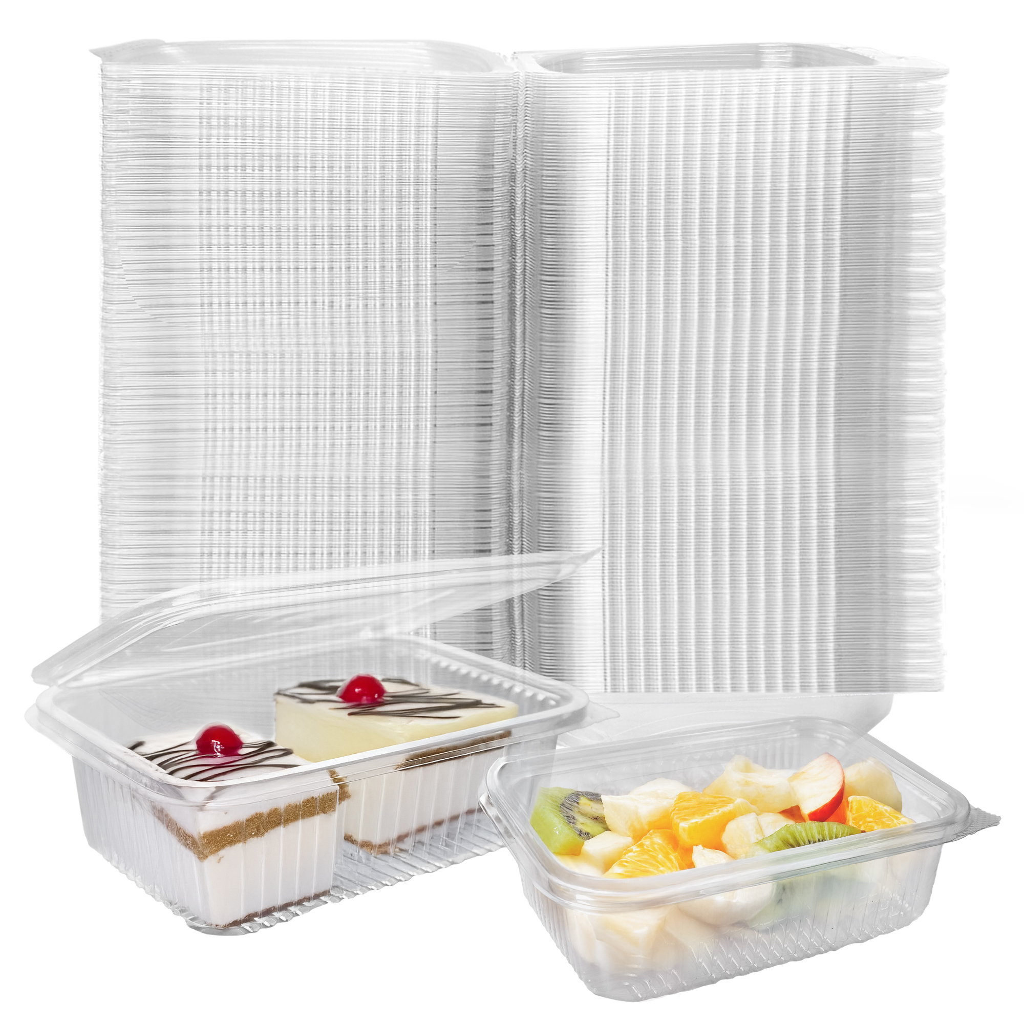 The sturdy, hinged design offers easy access to the contents while providing a secure, reliable closure. These containers are built with durability in mind, ensuring they stand up to transport and handling without breaking or cracking.